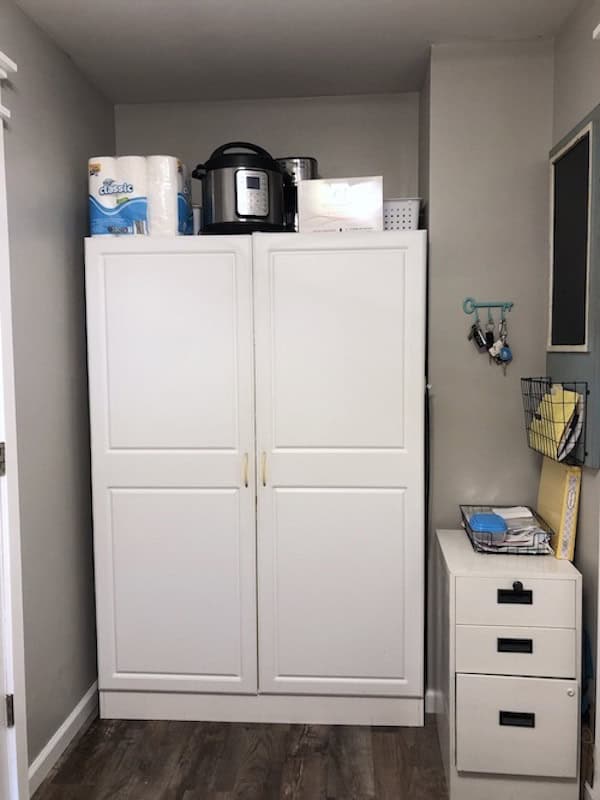 One day I received an Instantpot, and the only place we had to store it was on top of the current pantry, which was hard for me to reach. This started bringing that project to the front of my mind again. Additionally, I had been thinking about an air fryer but was not about to purchase one until I had figured out where we could store it. Wouldn’t that built-in Elfa pantry be the perfect solution?
