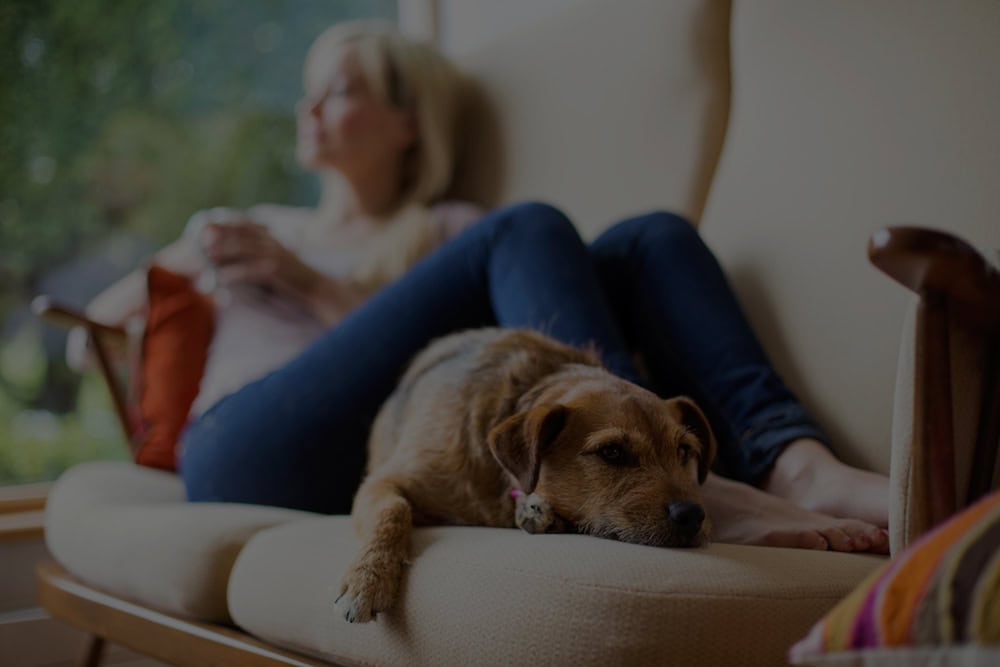 Woman relaxing with dog